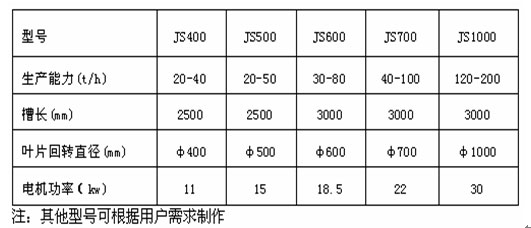 四、JS加濕(干粉)雙軸攪拌機(jī)技術(shù)規(guī)格參數(shù):